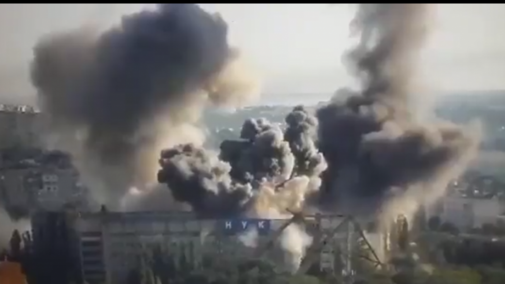 Глава Николаевской ОВА Виталий Ким опубликовал видео взрыва одного из университетов в Николаеве, который прогремел после утреннего обстрела российскими войсками города.