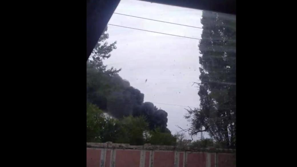 На данный момент неизвестно, куда именно попали снаряды, но дончане подозревают прилет в военную базу НВФ, так как в городе виден огромный черный столб дыма.
