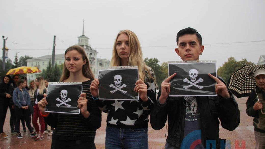 Студенты оккупированного Луганска своеобразно отметили Международный день демократии. Молодые люди вынесли приговор украинским политикам и выбросили их в урну. Об этом сообщают массмедиа, подконтрольные боевикам.