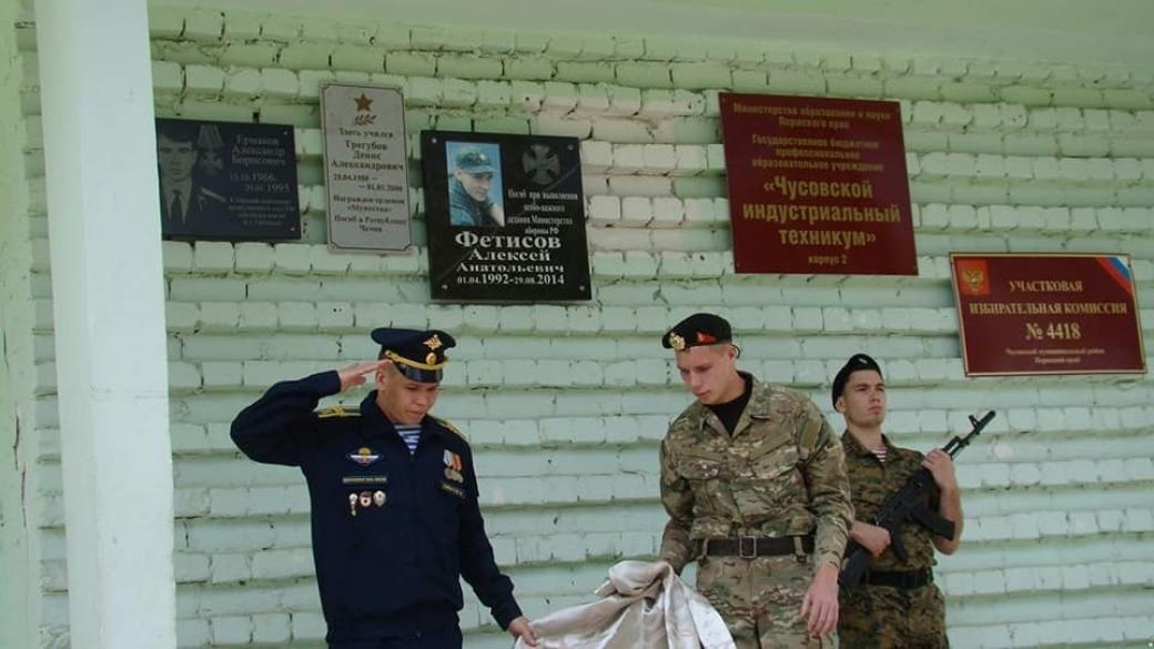 По словам Штефана, речь идет об Алексее Фетисове. Видно, что на мемориальной доске, написано «Погиб при выполнении особо важного задания Минобороны РФ».