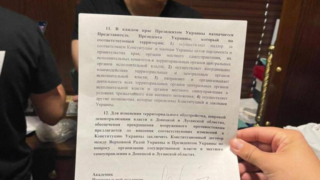 По информации силовиков, документ предусматривает переименование данных областей в так называемые "края", широкую автономию, проведение выборов, формирование отдельного правительства и парламента.