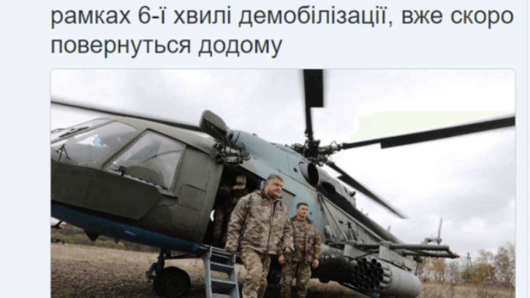 Пресс-секретарь президента Святослав Цеголко сообщает: «Прибыл в зону АТО поздравить с праздником и вручить награды военным, в рамках 6-й волны демобилизации, уже скоро вернутся домой».