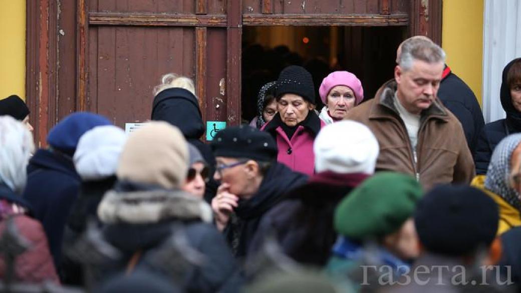 По данным СМИ, люди начали собираться у собора Александра Невского в Риге задолго до отпевания, поскольку храм не очень большой и места для всех желающих попрощаться с артистом внутри не хватает.