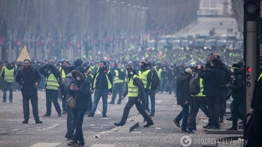 Как сообщили в «360tv», число задержанных в Париже достигло 79 человек. Протестующие прорвали заграждение полиции на Елисейский полях и вышли на проезжую часть.