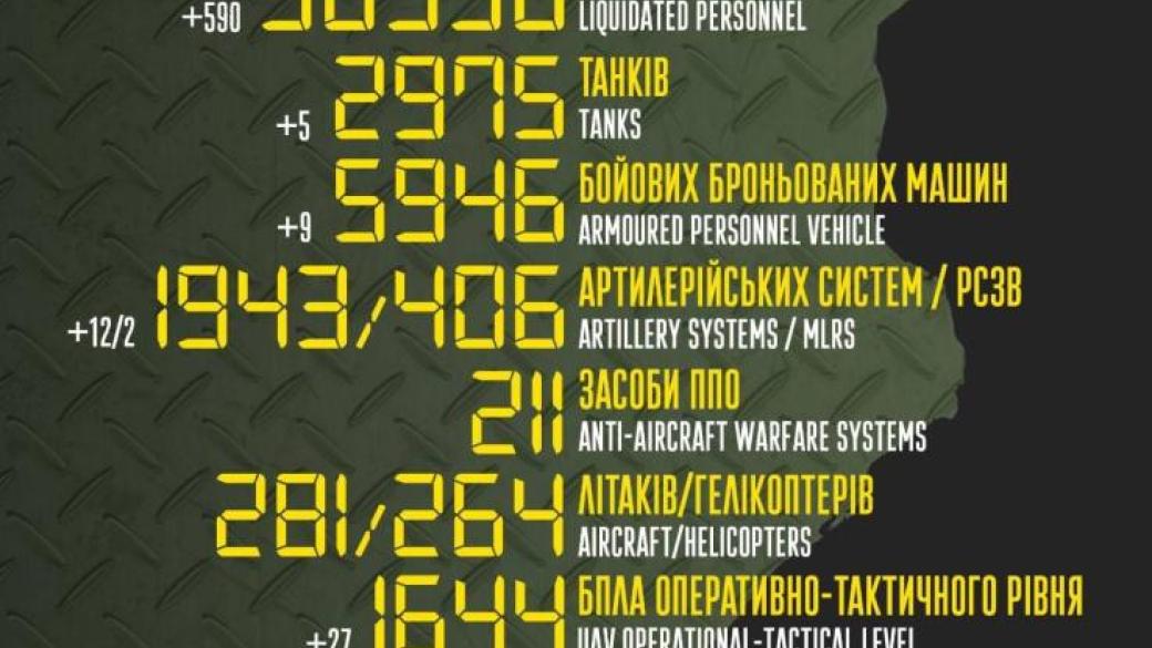 - личного состава - около 96 590 (+590) человек ликвидировано,