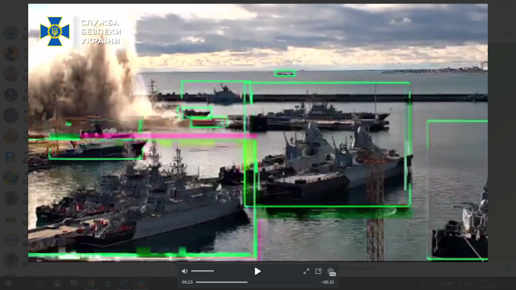 В спецслужбе напомнили, что пораженная лодка находилась в порту Новороссийска вынужденно, после того как серия успешных операций надводных морских дронов Sea Baby заставила российские корабли и субмарины покинуть Севастопольскую бухту во временно оккупированном Крыму.