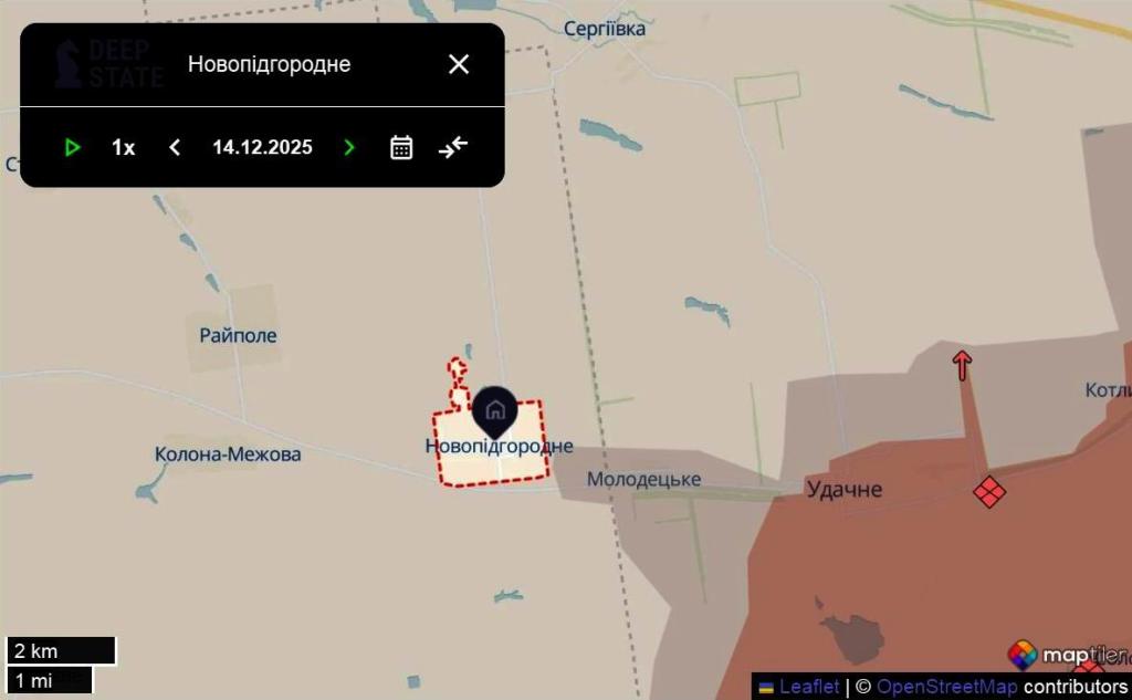 Подтверждения этим заявлениям в ISW нет, но продвижение россиян в этой местности зафиксировано на картах украинского информационного ресурса DeepState: серая зона здесь пересекла админграницу и вплотную приблизилась к Новоподгороднему.