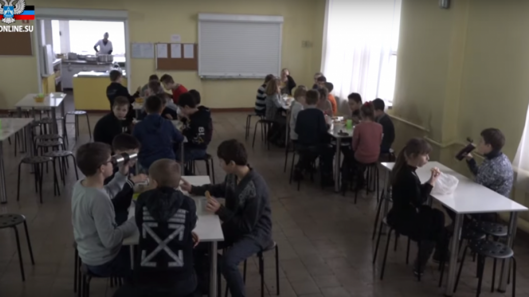 На видео действительно видно, что дети пьют чай из разных термочашек и достают еду из пакетов, а одна из директрис записана на фоне пустых полок. Ни одного кадра с едой в сюжете нет. Сам же пропагандист Акутин, выдавая свой сюжет, назвал всех недовольных «украинскими провокаторами» и «агентами СБУ».