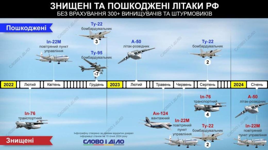 ВСУ уничтожили 11 российских самолетов с начала полномасштабного вторжения, еще 14 самолетов наши бойцы смогли повредить