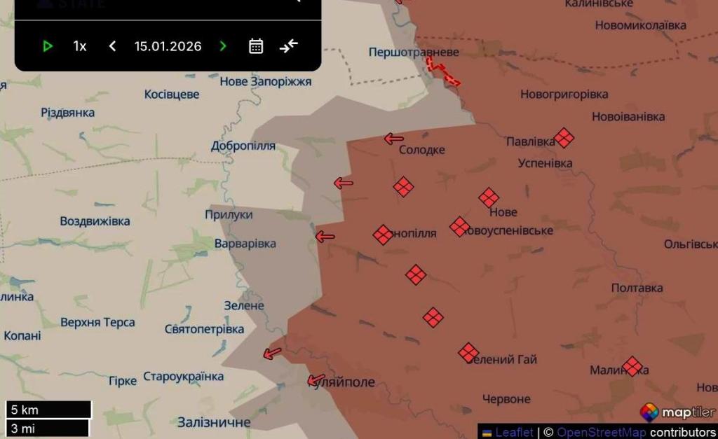 За прошедшие сутки на востоке Запорожской области россияне продвинулись сразу на нескольких локациях. Это следует из отчета украинского информационного ресурса DeepState.