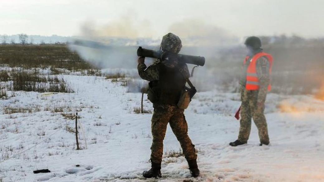 «На Луганщине бойцы, выполняющие боевые задачи в районе операции Объединенных сил, совершенствовали навыки стрельбы из реактивного огнемета РПО-А „Шмель“».