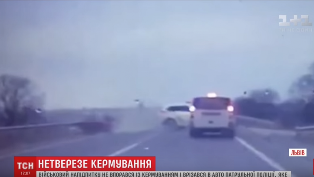На трассе возле Львов нетрезвый военный на своем авто въехал в автомобиль патрульных.