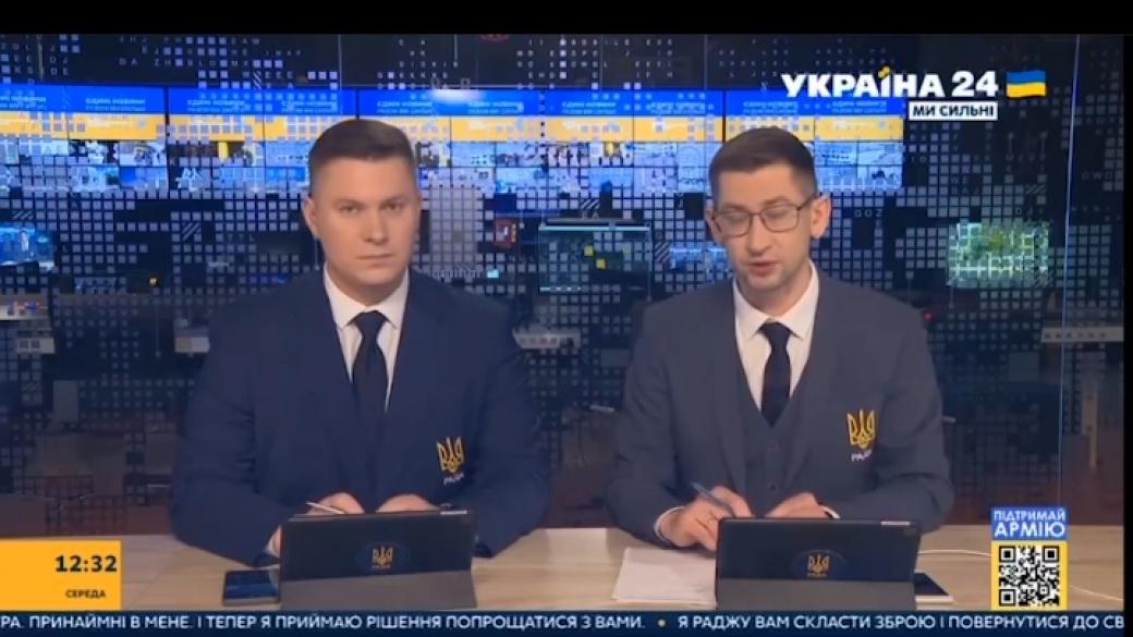 Там транслируется бегущая строка с фейковым заявлением Зеленского с призывом к украинским военным сложить оружие.