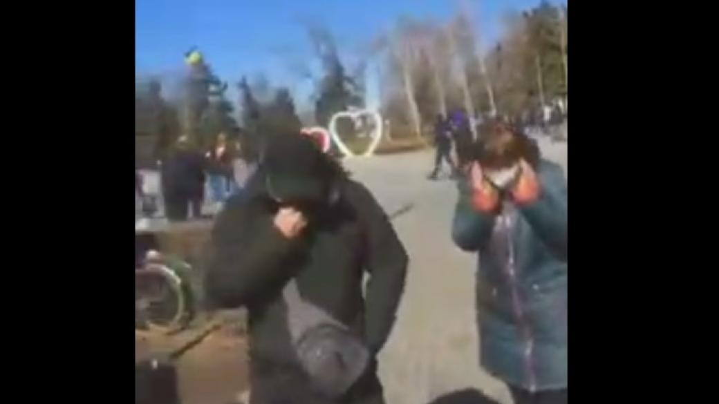 Журналист опубликовал видео, где видно и слышно, как оккупанты открыли стрельбу и применяли слезоточивый газ к людям, которые стояли на площади перед горсоветом.