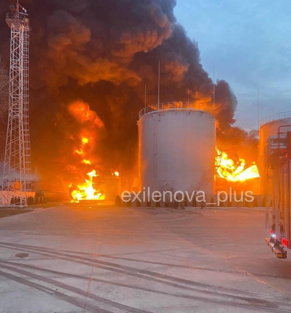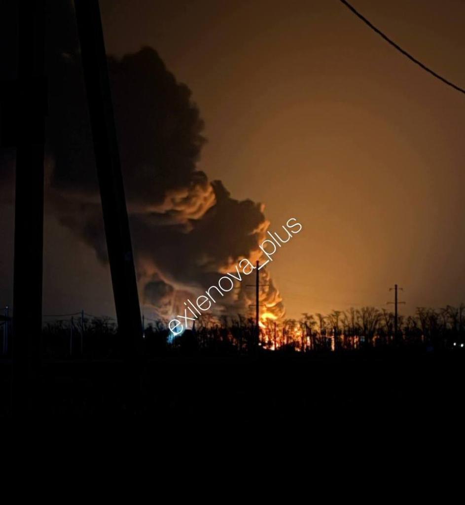 "В промышленной зоне Лабинска в результате атаки БПЛА произошло возгорание на территории нефтебазы. По предварительной информации, пострадавших нет", - сказано в официальном сообщении. оперативного штаба Краснодарского края.