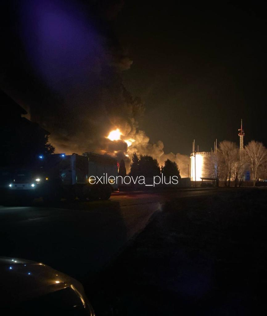 В настоящее время известно, что на территории нефтебазы наблюдается открытое горение. Столб черного дыма виден за несколько километров от места происшествия.