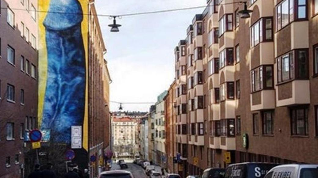 В Стокгольме в течение недели зарисуют мурал с изображением пениса на пятиэтажном доме из-за жалоб жителей соседних домов.