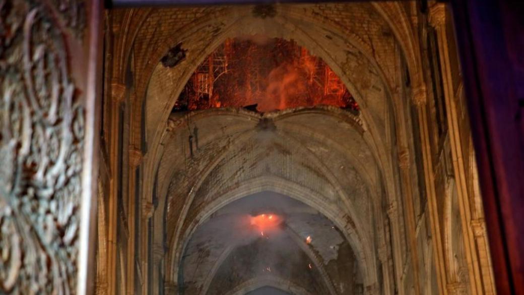 В Интернете появились фото, сделанные изнутри собора Парижской Богоматери после пожара.