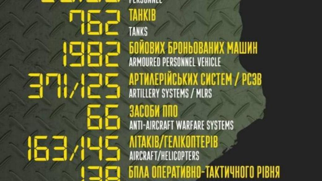 Россия за сутки потеряла в Украине почти 500 военных, самолет, вертолет и десятки танков