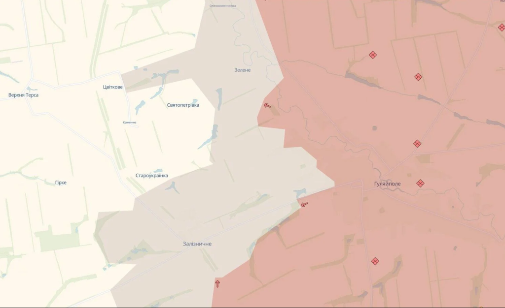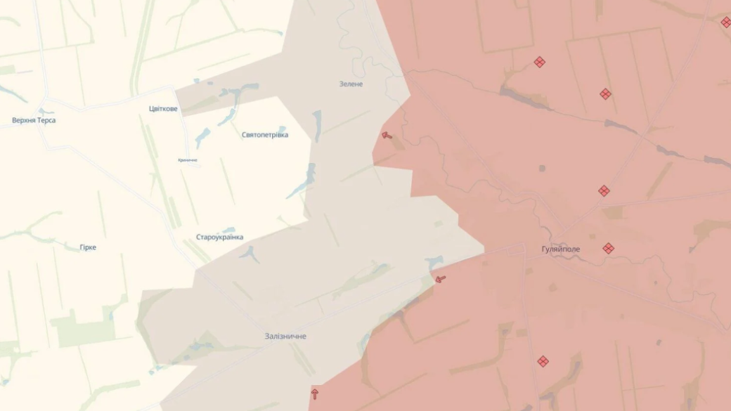 За минувшие сутки российские оккупанты смогли частично продвинуться в районе города Гуляйполе в Запорожской области. Об этом свидетельствует карта украинского аналитического проекта DeepState.