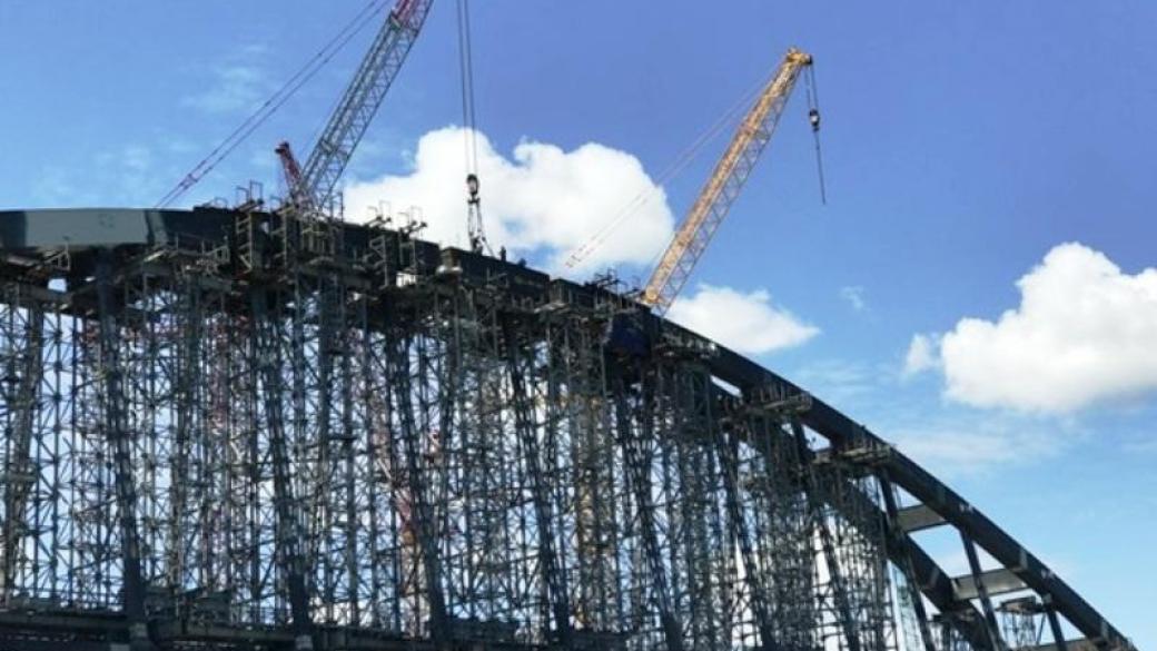 В аннексированном Крыму на керченском берегу завершена укрупнительная сборка железнодорожного арочного пролета Крымского моста.