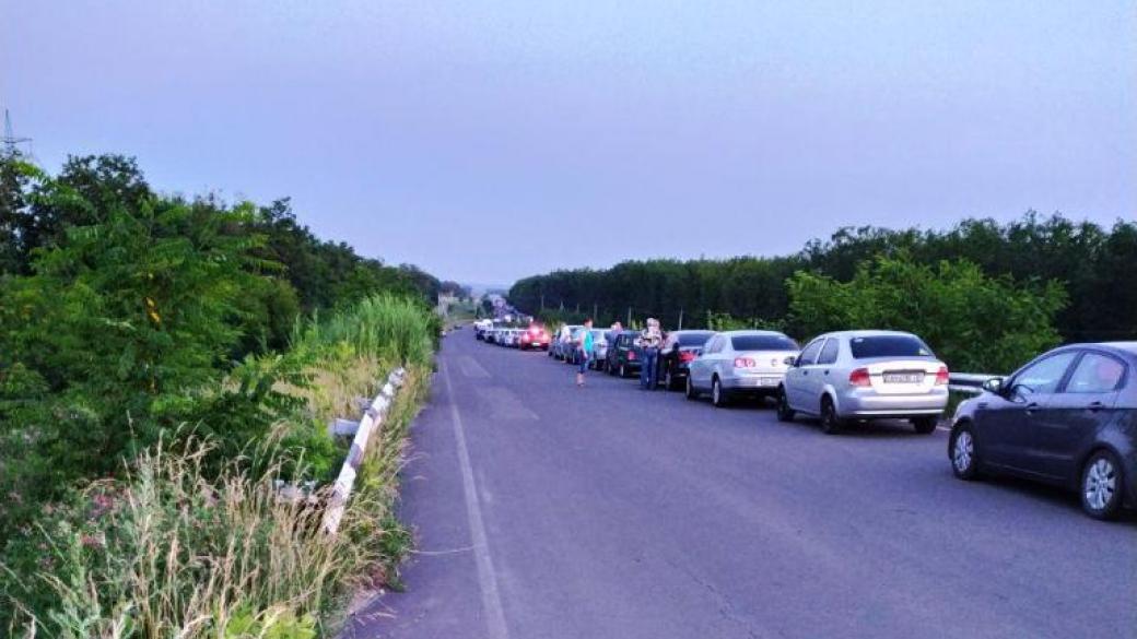 «Доброе утро, стою на блокпосту Майорск в Украину, 80 авто впереди, уже за полицией, перед полицией машин 70 точно!!!»