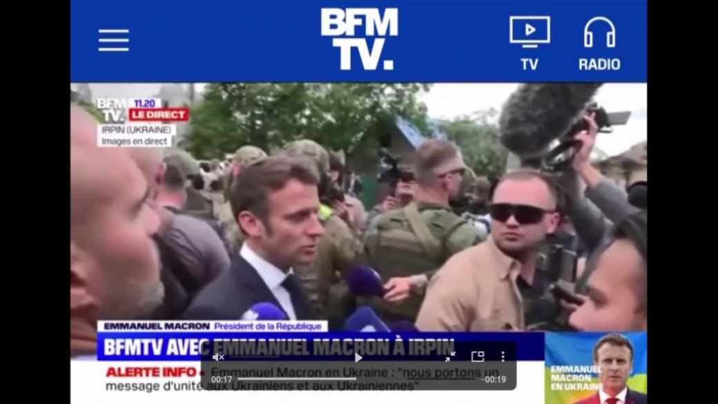 «Мы приехали сюда, чтобы показать наше уважение и наше восхищение мужеством украинцев», — заявил президент Франции в Ирпене.