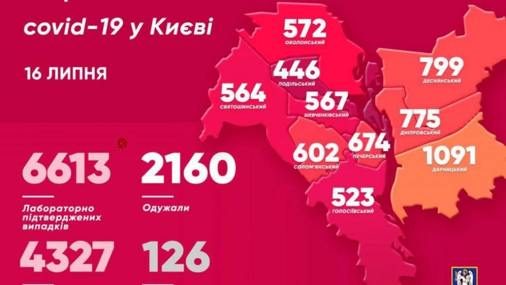 Больше всего новых случаев заболевания обнаружили за прошедшие сутки в Дарницком районе — 21, в Деснянском — 20 и в Голосеевском районе — 18 случаев.
