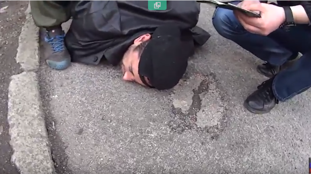 Необычным является то, что на видео задержанный «диверсант» несмотря на сильную жару, одет в кожаную куртку.