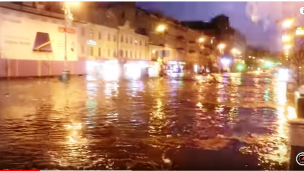 Сегодня ночью в Киеве прошла сильнейшая гроза с градом, после которой в отдельных районах города, в том числе и в центре с Крещатиком, были серьезные подтопления — стоки не справлялись с объемом прибывающей воды.