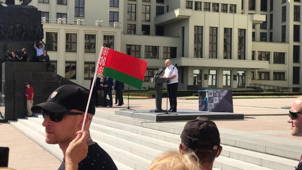 Прибывший на митинг в Минске президент Белоруссии Александр Лукашенко заявил, что «стоит на коленях» перед гражданами впервые в своей жизни. Об этом сообщает Telegram-канал RT.