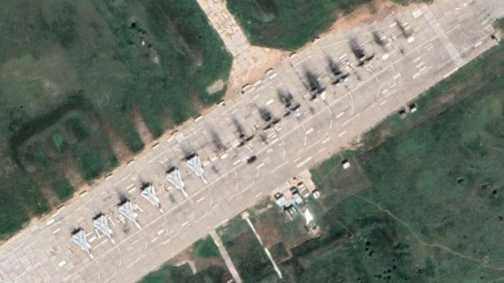 Ряд пабликов опубликовали фото того, как выглядела военная авиабаза РФ в аннексированном Крыму, над которой прогремели взрывы и якобы были «клубы черного дыма»