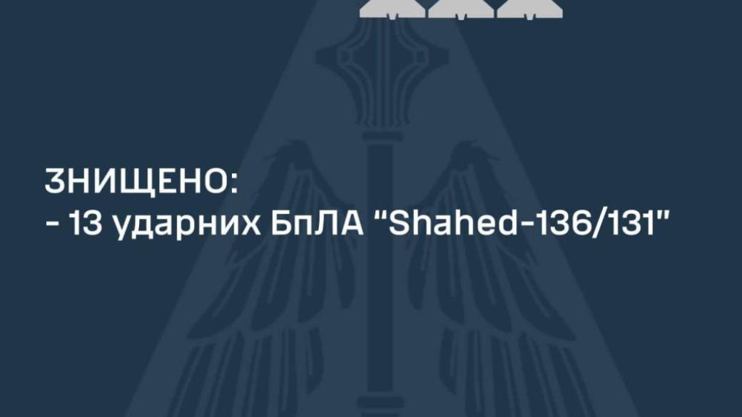Ночью уничтожено 13 из 16 "шахедов" над Одесской и Николаевской областями, - Воздушные Силы ВСУ.