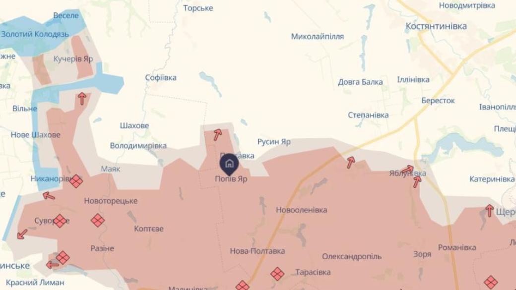 На Добропольском направлении оккупационные российские войска оккупировали село Попов Яр Донецкой области. Силы обороны отошли от населенного пункта. Об этом сообщает мониторинговый проект DeepState.