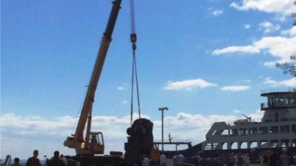 Сегодня утром на переправе через Керченский пролив автомобиль «Лада-Приора», находившаяся на пароме «Protoporos IV», во время швартовки подъехал к краю аппарели и упал в море.