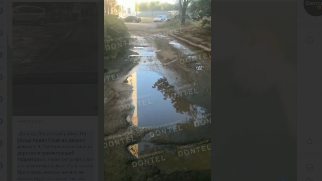 Подконтрольные ОРДО ресурсы в социальных сетях публикуют жалобы жителей неподконтрольного Украине Донецка на ужасное состояние внутриквартальных дорог.