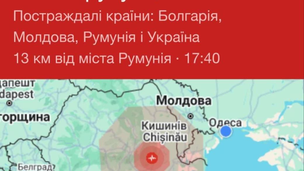 Землетрясение магнитудой 5,5 сегодня произошло в Румынии в 7 км Бухареста. При этом подземные толчки заметили в Молдове и ощутили жители Одессы. Также его почувствовали в Одесской и Николаевской областях нашей страны.