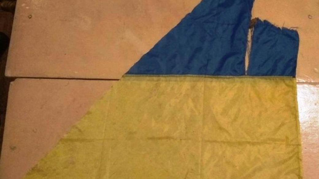 В прифронтовой Авдеевке Донецкой области неизвестные бросили на улице разорванный и затоптанный украинский флаг.