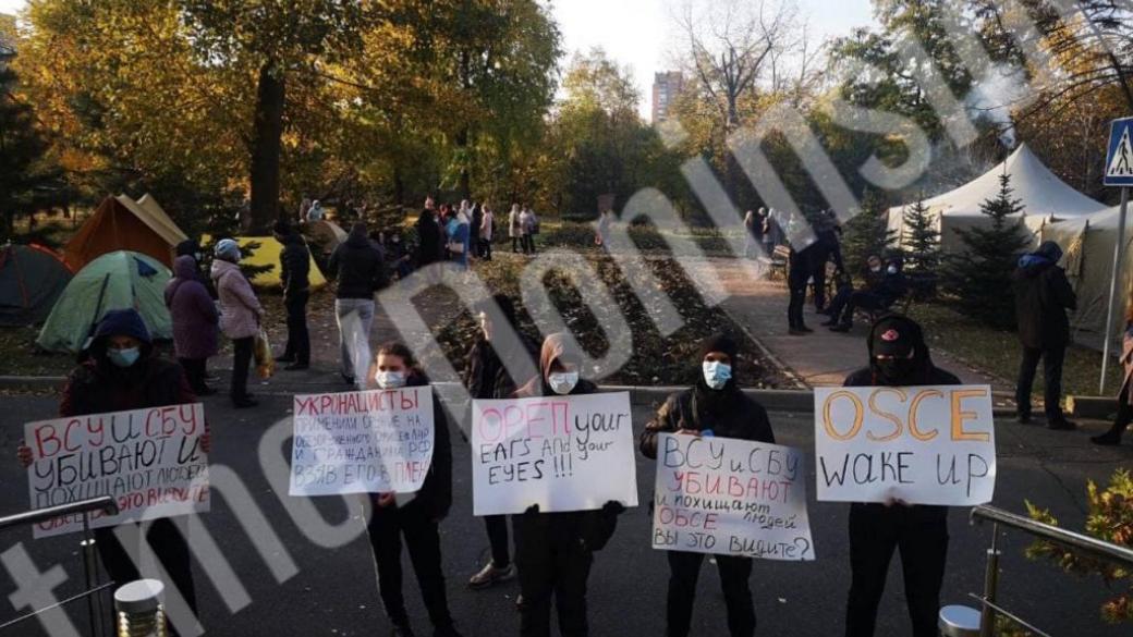 Это уже не первая акция протеста у здания, где располагается Специальная мониторинговая миссия ОБСЕ. Время от времени активисты из ОРДО призывают ОБСЕ «проснуться».