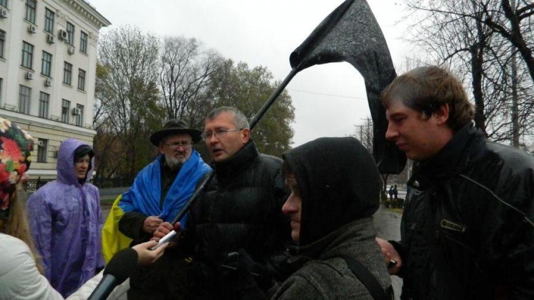 В Запорожье под зданием администрации около десятка горожан вышли на пикет против «донецких» и новоизбранного мэра Владимира Буряка. Организатор мероприятия, общественный активист Вадим Тихонов явился на акцию с черным флагом в руках, пишут местные СМИ. Об этом информирует сайт города Запорожья.