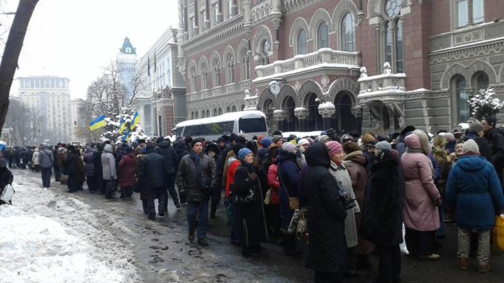 Сегодня под зданием НБУ в Киеве собралось около 2 тыс. митингующих. Сообщается, что протестующие организованно пришли под здание Нацбанка со стороны Крещатика.