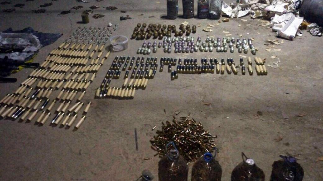 Отмечается, что за 5 часов полицейские изъяли из-под земли 287 гранатометных выстрелов ВОГ и ВОГ-17, 40 гранат (22 единицы Ф-1, 17 СГГ и 1 РГО) и два пулемета калибром 7,62 мм и 12,7 мм, а также 11 тыс. патронов.