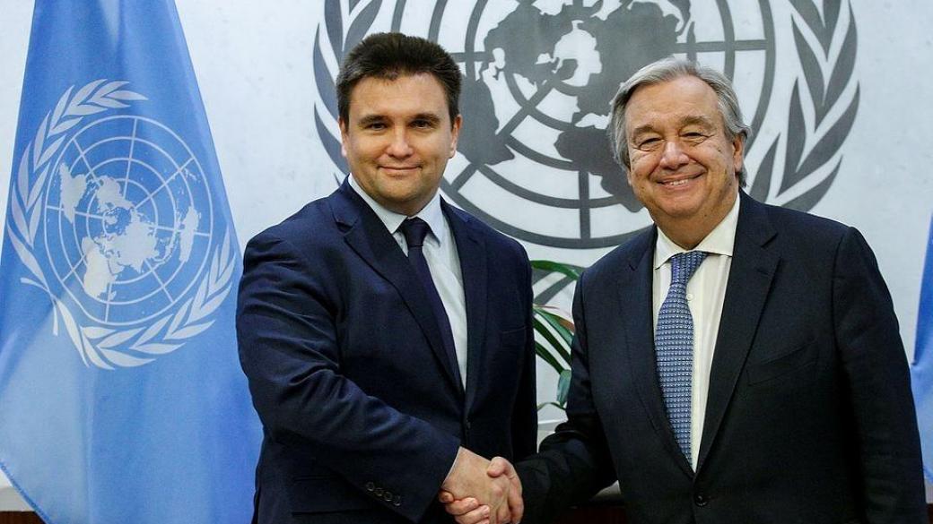 Павел Климкин обсудил с генеральным секретарем ООН Антониу Гутеррешем введение миротворцев ООН, а также взаимодействие в гуманитарной сфере в Донбассе.