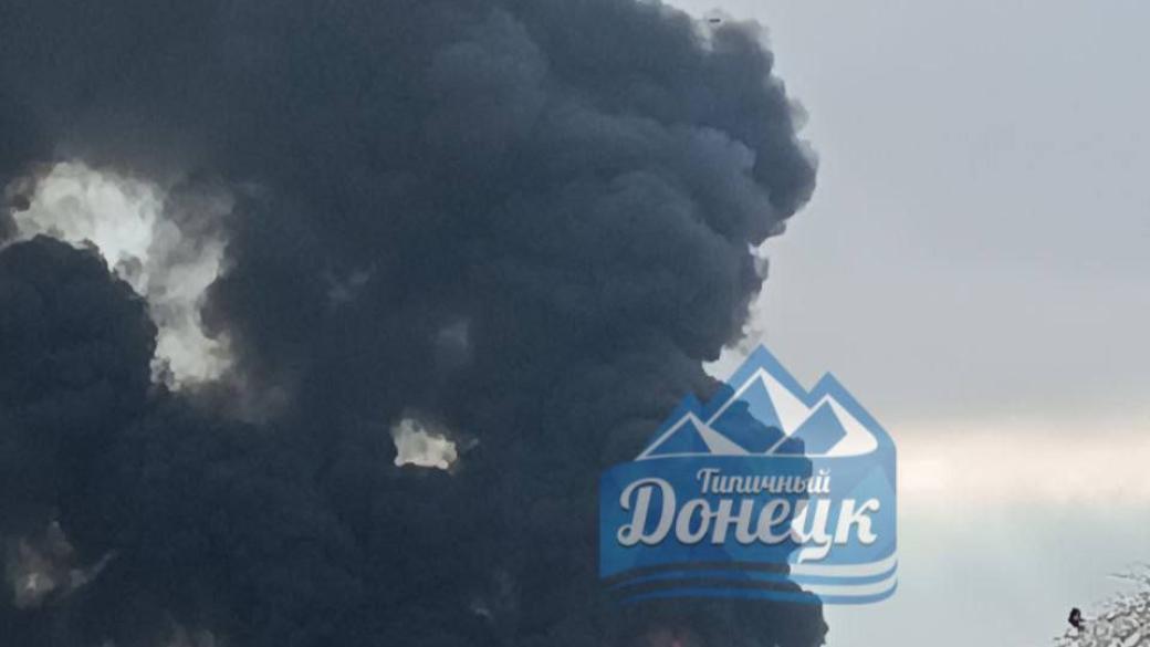 В районе Мотеля в Донецке после обстрела поднимается большой столб дыма