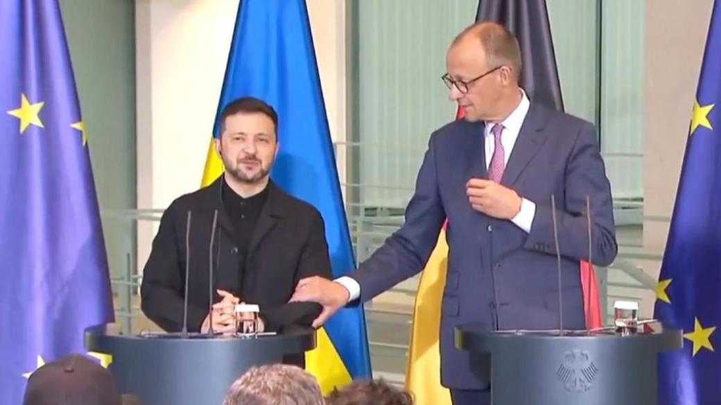 Президент Владимир Зеленский заявил, что во время переговоров по "мирному плану" США не требуют от Украины уйти с территории Донбасса. Об этом он сказал во время брифинга с канцлером ФРГ Фридрихом Мерцем в Берлине, сообщает Зеркало недели.