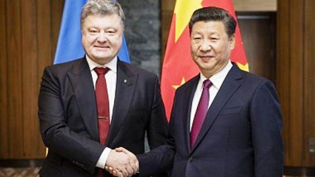 Во время встречи с президентом Украины Петром Порошенко на полях Всемирного экономического форума в Давосе Цзиньпин сообщил, что украинские-китайские отношения носят стратегический характер и базируются на принципах взаимного уважения суверенитета и территориальной целостности обеих стран.