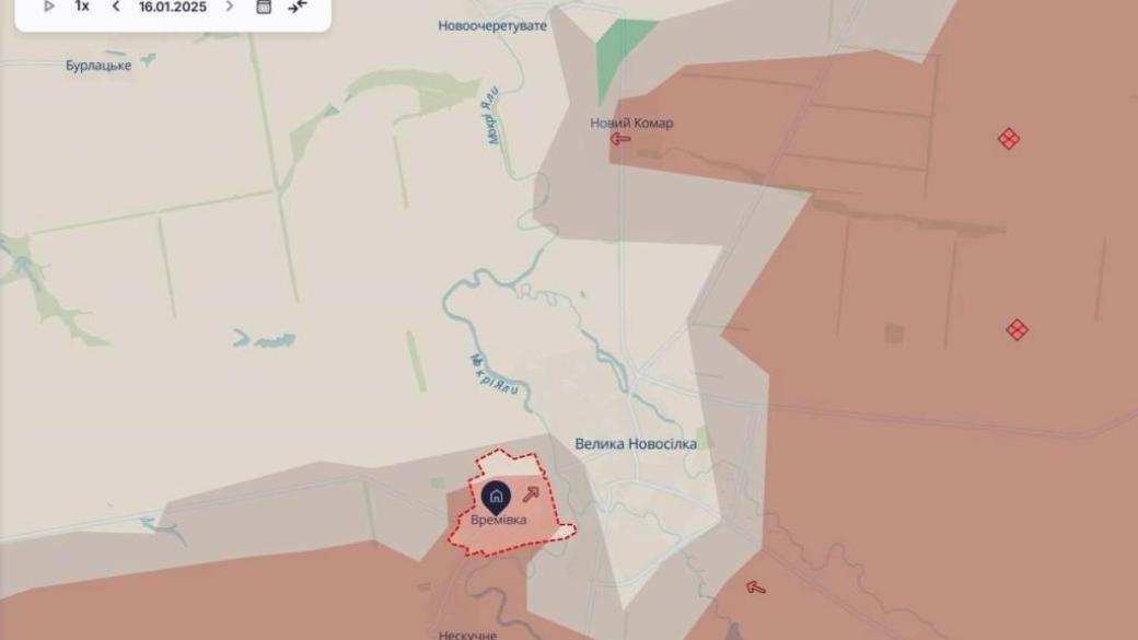 В Донецкой области, в районе Великой Новоселки начались ключевые бои за село Времовка. Об этом сообщил в Telegram украинский военный журналист Богдан Мирошников.