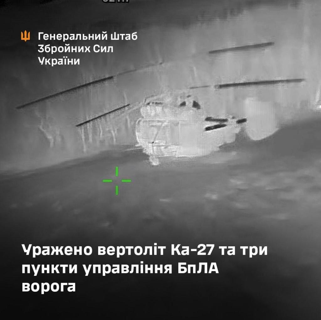 В ночь на 17 февраля в районе н.п. Камышлы в оккупированном Крыму украинскими воинами поражен корабельный многофункциональный вертолет Ка-27. Об этом сообщили в пресс-службе Генштаба ВСУ.