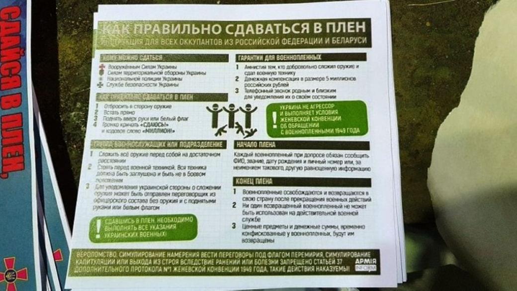 По данным паблика, 128 отдельная горно-штурмовая Закарпатская бригада готовит снаряды с подробной инструкцией «Как правильно сдаться в плен», пытаясь дать российским военным шанс спастись и не умереть.