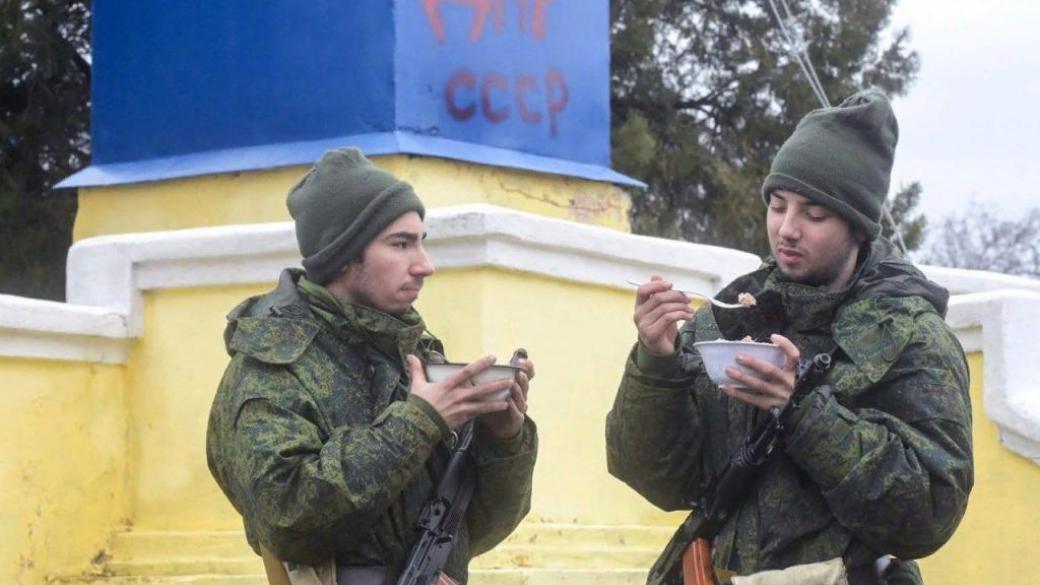 «Мобилизированные. В металлических касках и с рюкзаками времен Второй Мировой войны. Их сейчас бросят в бой -освобождать Украину от «нацистов», говорится в сообщении.